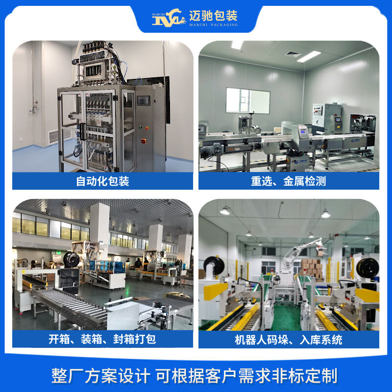 邁馳是一家專業生產全自動多列顆粒包裝機整線廠家,可根據客戶不同物料特性定制一對一方案,可根據產量定制列數-有序理料裝盒-自動裝箱-機器人碼垛。整廠方案設計,支持非標定制。26年包裝行業經驗,助力生產企業穩定生產,提高產能。